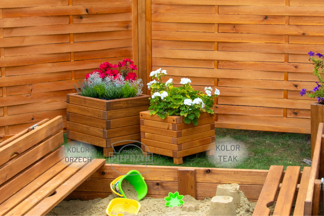 Donica zbudowana z kantówki o przekroju 5 × 5 cm