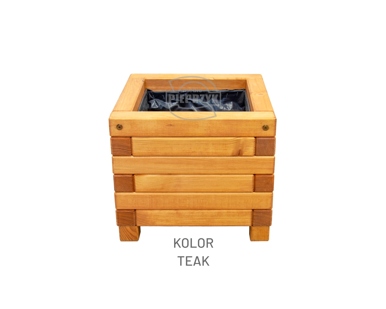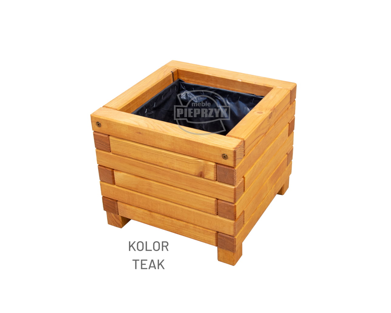 Wykonana z drewna sosnowego z wyjątkowo grubego materiału, czyli kantówki o przekroju kwadratowym 5 × 5 cm. Pomalowana 2 razy impregnatem w wybranym kolorze, który zabezpiecza powierzchnię przed działaniem czynników zewnętrznych. Impregnat Koopmans Impra lub Vidaron. Środek donicy zabezpieczony grubą czarną folią, która zabezpiecza wnętrze donicy przed nadmiernym przesiąkaniem wilgoci.